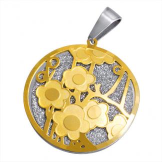 STAINLESS STEEL PENDANT IN IPG 2 TONE WITH 7 FLOWERS