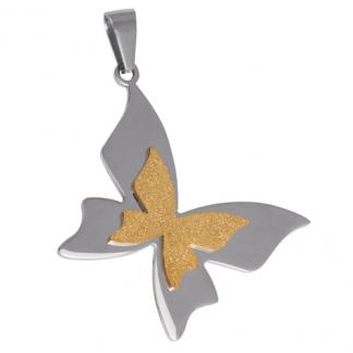 STAINLESS STEEL PENDANT IN BUTTERFLY WITH SANDBLAST IN IPG 2 TONE