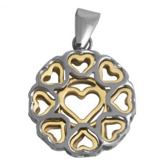 STAINLESS STEEL PENDANT IN CIRCLE SHAPE WITH HEART CUTOUT IN IPG TWO TONE