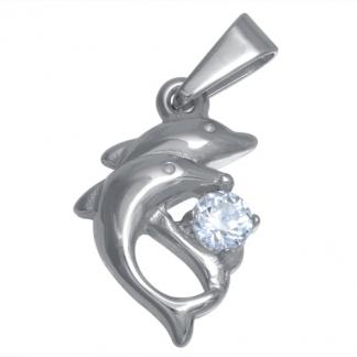 STAINLESS STEEL PENDANT WITH TWO DOLPHINS WITH CZ ALL IN S/S COLOR