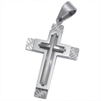 STAINLESS STEEL PENDANT WITH THREE CROSS ALL IN S/S COLOR