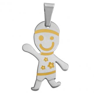 STAINLESS STEEL PENDANT WITH SMILING KID IN IPG TWO TONE