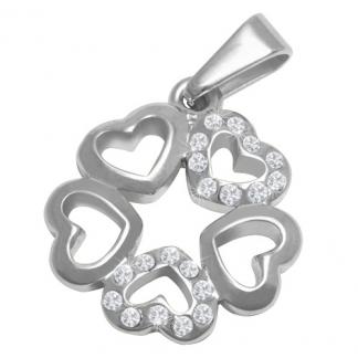 STAINLESS STEEL PENDANT WITH 5 HEARTS WITH CZ ALL IN S/S COLOR