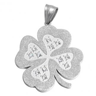 STAINLESS STEEL PENDANT WITH FLOWER (CLOVER) WITH CZ WITH SANDBLAST ALL IN STEEL COLOR