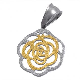 STAINLESS STEEL PENDANT WITH ROSE SHAPE IN IPG TWO TONE WITH SANDBLAST