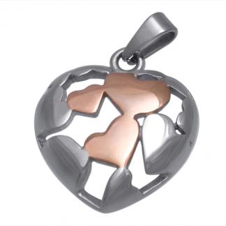 STAINLESS STEEL PENDANT IN HEART SHAPE WITH HEARTS PATTERN IN IP ROSE TWO TONE