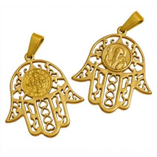 STAINLESS STEEL RELIGIOUS PENDANT IN HAMSA HAND SHAPE WITH SAN BENITO ALL IN IPG