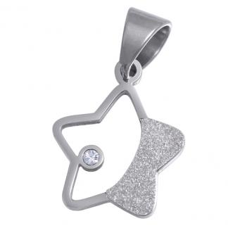 STAINLESS STEEL PENDANT IN STAR SHAPE WITH 1 CZ WITH SANDBLAST ALL IN STEEL COLOR