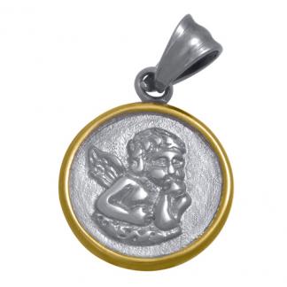 STAINLESS STEEL ROUND PENDANT WITH ANGEL IN IPG TWO TONE