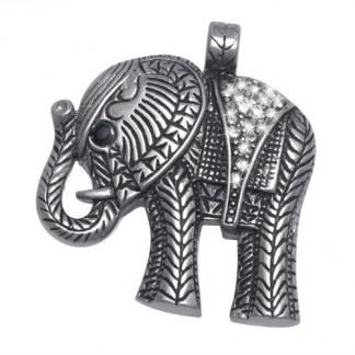 STAINLESS STEEL ELEPHANT PENDANT WITH BLACK COLOR WITH 1 BLACK CZ & WHITE CZ
