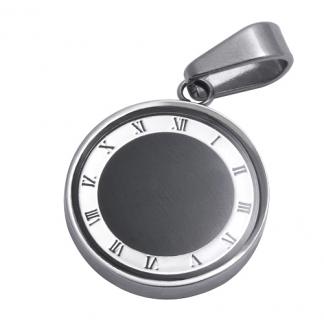 STAINLESS STEEL PENDANT WITH ROMAN NUMBERS WITH BLACK ENAMEL