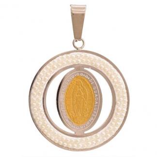 STAINLESS STEEL PENDANT IN CIRCLE SHAPE WITH GUADALUPE WITH LASER EFFECT IN IPG TWO TONE