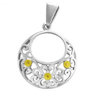 STAINLESS STEEL PENDANT IN CIRCLE SHAPE WITH FLOWER PATTERN IN IPG TWO TONE