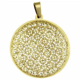 STAINLESS STEEL PENDANT IN CIRCLE SHAPE WITH MESH PATTERN ALL IN IPG COLOR