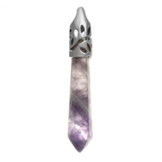 STAINLESS STEEL PENDANT ALL IN S/S COLOR IN LONG CRYSTAL SHAPE WITH PURPLE MABLE STONE