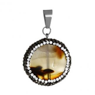 STAINLESS STEEL PENDANT SUNSEL LIKE COLOR STONE WITH BLACK & WHITE CZ ALL IN S/S COLOR