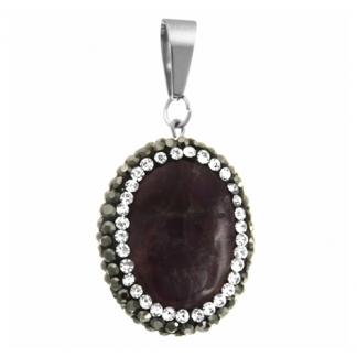 STAINLESS STEEL PENDANT OVAL SHAPE WITH PURPLE STONE WITH BLACK & WHITE CZ ALL IN S/S COLOR