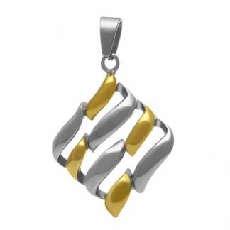 STAINLESS STEEL PENDANT IN RHOMBUSSHAPE WITH A WAVY NAIL PATTERN IN TWO TONE S/S & IPG COLOR.