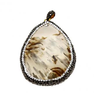 STAINLESS STEEL PENDANT IN DROP SHAPE WITH A AGATE STONE WITH BLACK AND CRISTAL ALL IN IPG COLOR