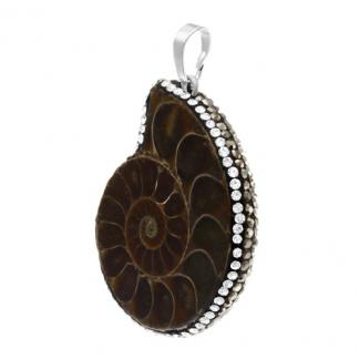 STAINLESS STEEL PENDANT OF STONE IN SHAPE SNAIL IN WITH CRYSTAL BLACK & WHITE IN S/S COLOR