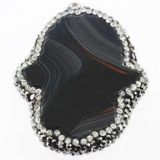 STAINLESS STEEL PENDANT IN SHAPE OF HAND WITH A EYE CENTER AND CRISTAL WHITE AND BLACK ALL IN IPG COLOR