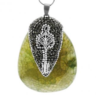 STAINLESS STEEL PENDANT DROP SHAPE RED COLOR AND CRYSTAL WITH BLACK