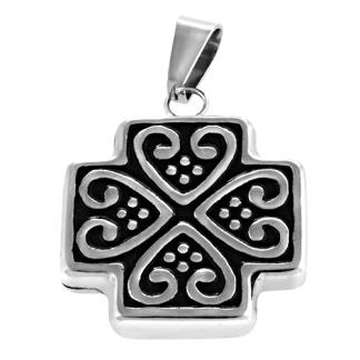 STAINLESS STEEL CROSS PENDANT WITH BLACK ENAMEL
