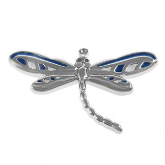 STAINLESS STEEL PENDANT IN DRAGONFLY SHAPE WITH BLUE AND WHITE ENAMEL