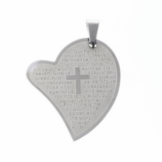 STAINLESS STEEL HEART PENDANT WITH THE TEXT OF AVE MARIA AND OUR FATHER.. ON EACH SIDES