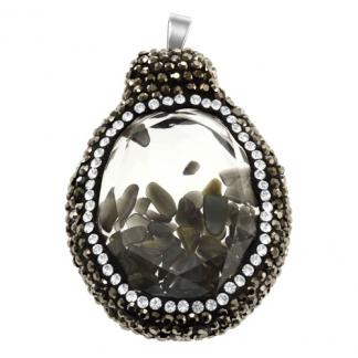 STAINLESS STEEL PENDANT CIRCULAR SHAPE CRYSTAL WITH BROWN AND WHITE CZ IN S/S COLOR
