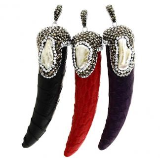 STAINLESS STEEL PENDANT OF STONE IN SHAPE TUSK IN DIFFERENTS COLORS WITH CRYSTAL BLACK & WHITE AND A STONE WHITE