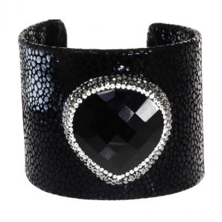 STAINLESS STEEL BANGLE ALL IN BLACK COLOR WITH CRYSTAL BLACK Y WHITE