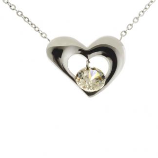 STAINLESS STEEL NECKLACE ALL IN S/S COLOR WITH HEART PENDANTS AND CRYSTAL