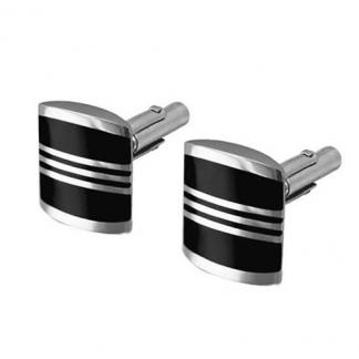 STAINLESS STEEL CUFF LINK WITH BLACK ENAMEL IN S/S COLOR