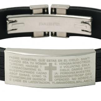 STAINLESS STEEL BANGLE PU WITH CENTRE PLATE WITH CROSS & BIBLE VERSE (PADRE NUESTRO)
