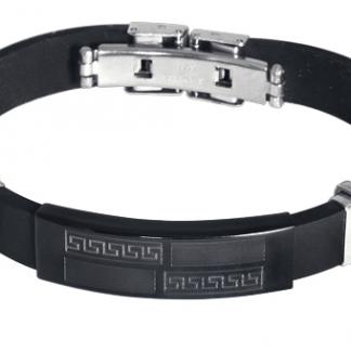 STAINLESS STEEL BANGLE WITH S PATTERN IN IP BLACK COLOR AND WITH PU