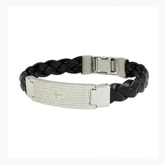 STAINLESS STEEL BRACELET PU WITH CENTRE PLATE WITH CROSS & BIBLE VERSE