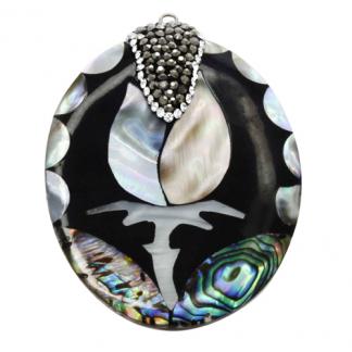 STAINLESS STEEL PENDANT IN CIRCULAR SHAPE WITH A PSYCHEDELIC DESIGN IN A ENAMEL WITH A ROSE IN VARIOUS TONES AND BLACK & WHITE CZ ALL IN S/S IN SHELL