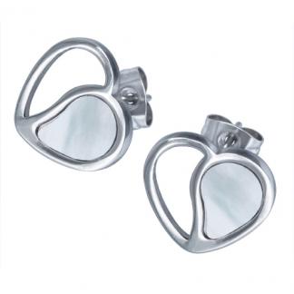 STAINLESS STEEL HEART EARRING WITH SHELL IN S/S COLOR