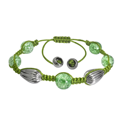| Stainless Steel Bracelet With one green crystal ball in outer dia. 12mm In centre and 4pcs green crystal ball in outer dia. 10mm with stainless steel |