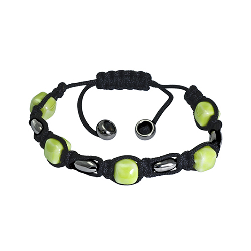 Stainless Steel Bracelet With green square crystal ball in outer dia. 11mm With stainless steel