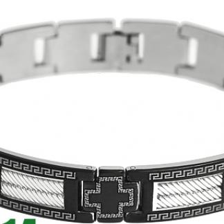 Stainless steel bracelet IPB two tone with cross design in the middle and two stripped pattern links on both sides