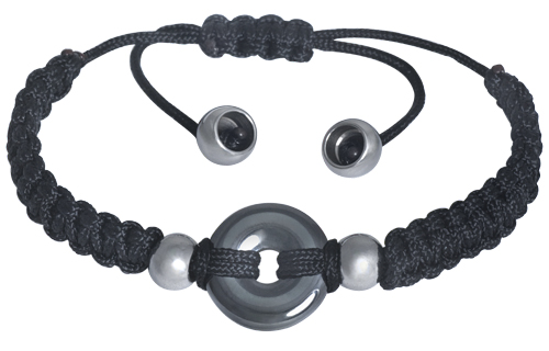 Stainless steel bracelet With one Hematite HOLLOW CIRCLE in centre With stainless steel beads