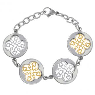 Stainless Steel Bracelet in IPG two tone with 4 CIRCLE with heart pattern