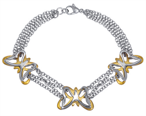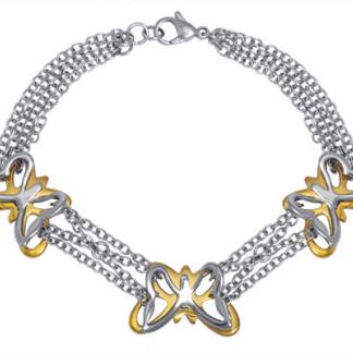 Stainless Steel Bracelet WITH THREE BUTTERFLIES IN IPG TWO TONE