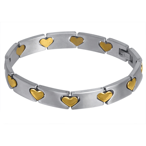 Stainless Steel Bracelet IN IPG TWO TONE CHAIN WITH HEART PATTERN