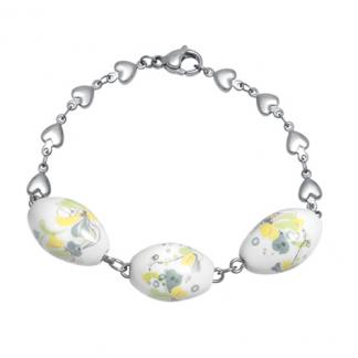 Stainless Steel Bracelet WITH 3 OVAL IMITAITON CERAMIC BEADS WITH HEART CHAIN