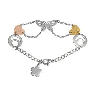 CIRCLE AND FLOWER WITH SANDBLAST IN IPG & IP ROSE 3 TONE