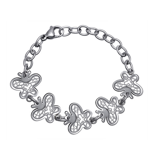 Stainless Steel Bracelet WITH 5 BUTTERFLY WITH CUT OUT ALL IN STEEL COLOR