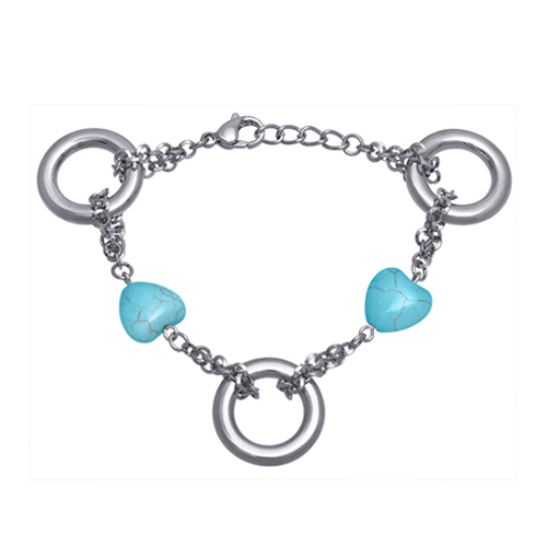 Stainless Steel Bracelet WITH 2 TURQUOISE HEART WITH 3 CIRCLE RING